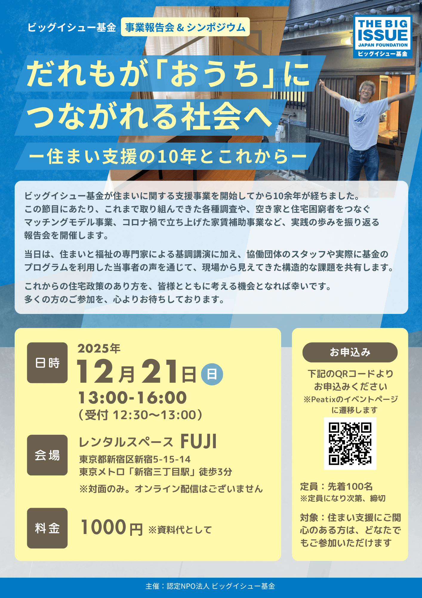 ビッグイシュー基金が住まいに関する支援事業を開始してから10余年が経ちました。