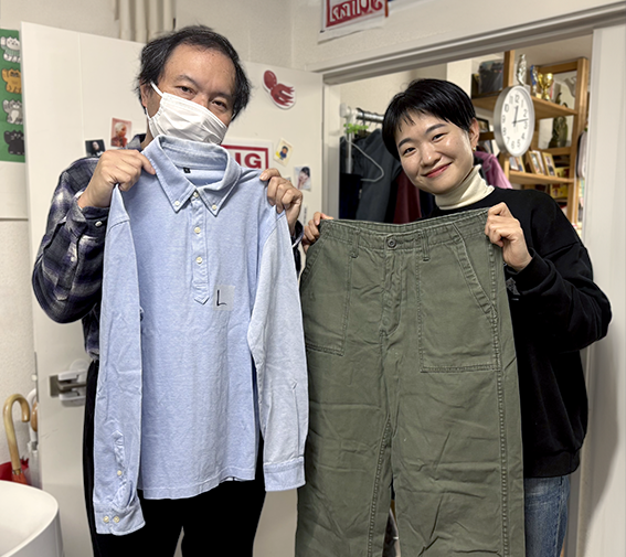 基金では、寄付でいただいた男性用衣料を、事務所に訪れる相談者や、路上で雑誌販売をするホームレス当事者に提供しています。