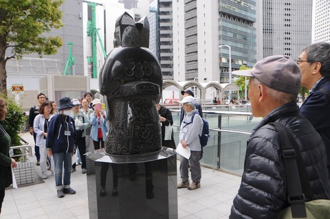 ビッグイシュー販売の仕事をするホームレス当事者、濱田さん主催のまち歩きクラブ「歩こう会」。
