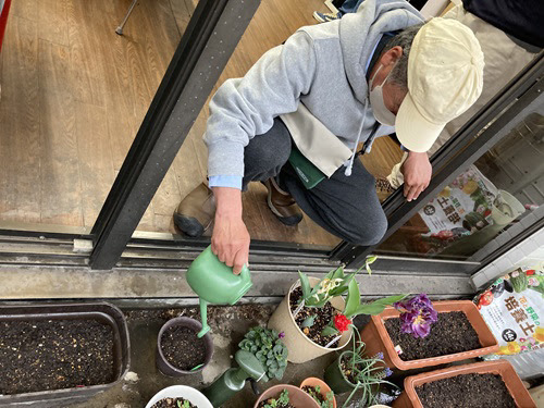 ビッグイシュー日本東京事務所のベランダで、ビッグイシュー販売者を中心としたメンバーがプランターに野菜の種を植え、水やりのチェック表を作成し、手分けして世話をしています。収穫できた野菜は、イベントなどで調理して振舞われます。
